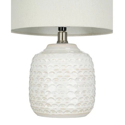 - Embrace the warmth of tone on tone whites with this transitional ceramic accent lamp which is the perfect color and size for small spaces like nightstands, desks and small end tables.