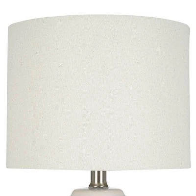 This eggshell white transitional ceramic table lamp featuring a reactive glazed finish topped with an off-white linen shade makes the perfect tonal accent piece with that blends with a variety of décor styles. The lamp is fitted with an easy and convenient push on/off switch. Try pairing them next to your bedside or favorite sofa to bring together a cohesive look.