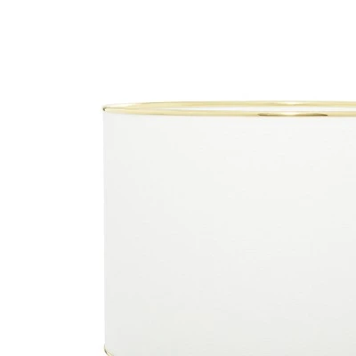 - Glossy white glaze finish and metallic gold metal electroplated rim and white drum shade