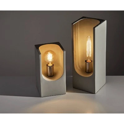 The Clyde Tall Table Lantern serves as both an ambient light source and an industrial decoration for your space. Whether it is set on a bookshelf, on the entryway table or in your bedroom, the 40W tube shaped vintage bulb (included with this item) adds warmth to the area. Crafted of gray concrete, this lamp blends in with various color schemes while adding a touch of vintage flair. An easy on/off rocker switch is located on the clear cord.