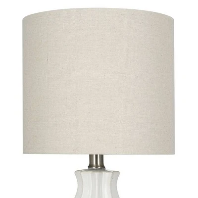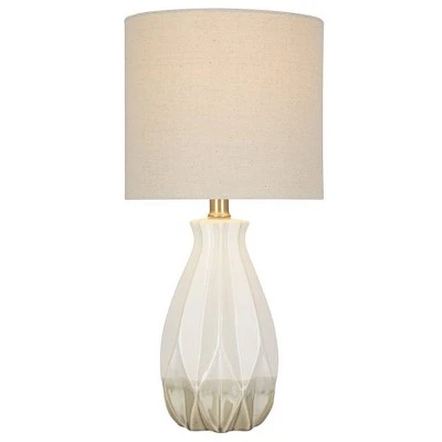 Illuminate your home with this transitional ceramic table lamp. The natural earthtones of the white and beige reactive glazed faceted body paired with an oatmeal linen shade makes for the perfect accent that blends with a variety of decor styles. The lamp is fitted with an easy and convenient on/off push switch. Try pairing them next to your bedside or favorite sofa to bring together a balanced and cohesive look.