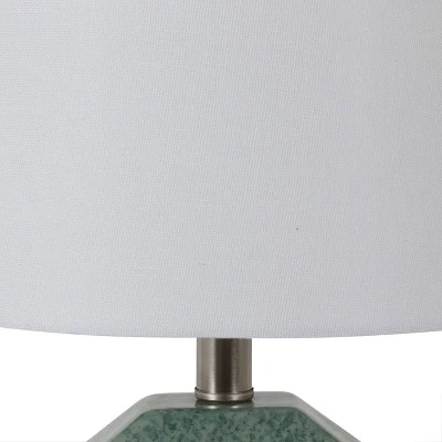 A simply stylish accent piece that always shines, the Carrol table lamp is the perfect display of chic, minimalistic design. Geometric lines define the silhouette of the base, while the glazed finish softens the look. A modern round linen shade enhances the look and lends a tailored feel. Measures 12x12x19.5″