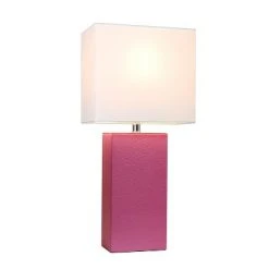 This fashionable table lamp, with its leather body and white fabric shade, will add style and pizzazz to any room. This item is sold in a number of base color options, and white shade. We believe that lighting is like jewelry for your home. Our products will help to enhance your room with elegance and sophistication.