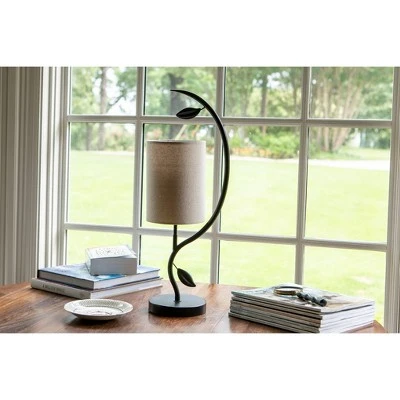 A touch of nature with an urban twist, this curvaceous table lamp is sure to be a conversation starter. Crafted in metal with a bronze-painted finish, the Anna lamp resembles a rambling vine with two small leaves with a cylindrical linen shade at the center. This unique lamp supports your nature-inspired decor, or adds a dose of whimsy to a reading nook.