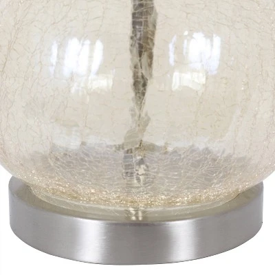 Add symmetric lighting to any small or large area with this set of two large table lamps. On each lamp, the transparent, gourd-shaped glass base is finished with a crackle effect, lending textural visual interest that elevates the neutral tone. Metal hardware appears throughout each lamp to compliment your contemporary fixtures. Finally, a large drum shade in crisp linen finishes the look.