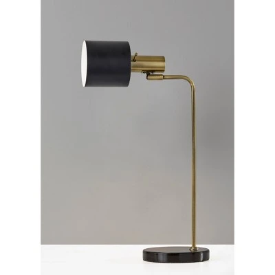 An essential addition to mid-century modern decor, the Emmett Desk Lamp is both functional and stylish. A small footprint allows this piece to fit neatly on the night stand or desk without taking up too much space. An adjustable shade allows for light to be directed where it is needed. A painted black metal and antique brass finish is accented by an elegant black marble base.