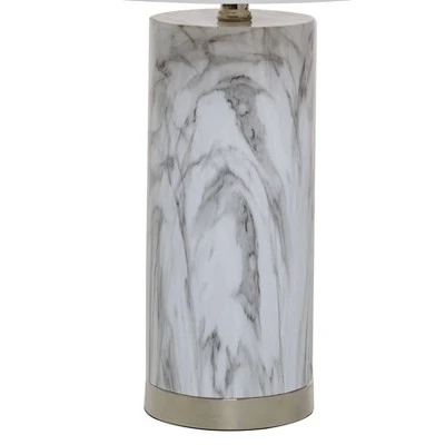 - STYLISH AND ELEGANT: This modern table lamp features a metal body with a faux marble finish and polished nickel metal accents. A white linen shade with matching harp and finial complete the look. The versatile design makes it the perfect addition to your living room, family room, bedroom, dorm room, home office, craft room, kitchen or any open concept living space. Great for apartment living or DIY home remodeling projects and suits a variety of styles including modern, transitional, contemporary, industrial, global, farmhouse, rustic and traditional decor.