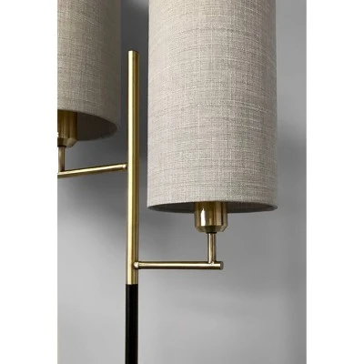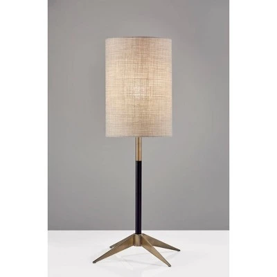 Mid-century modern influence is evident in the Davis Table Lamp. A mix of matte black and antique brass finishes comprise the body of the lamp. A tall cylinder shaped natural textured fabric shade softens the look. Perfect for the bedside, turn on and off by a simple rotary socket switch. A subtle clear cord comes neatly out of the bottom of the base.