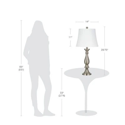 This classic table lamp showcases tradition at its best with a brushed nickel finish and turned decorative fonts on the lamp body. The silken bell shaped shade adds refinement to this timeless design. Try pairing them next to your bedside or favorite sofa to bring together a cohesive look. We stand behind our products and our customers are our number one priority. We offer a 1-year warranty for all Cresswell Lighting products and encourage you to contact us directly if you ever have an issue.