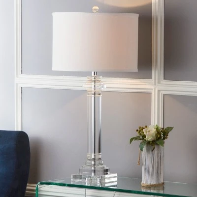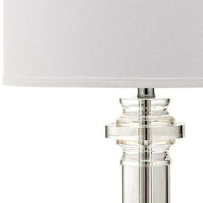 Balance and symmetry inform the shape of the classic Preston crystal column lamp, but when done up in clear crystal and off-white shade it gets a modernized twist. A see-through, rounded pillar-like design and visible chrome neck dress up any room in the home. The cool transparent composition gives off effortless glamour that makes it great for modern, contemporary, or transitional style rooms. The Pozzallo Crystal Table Lamp has a rotary switch, a E26 bulb base, and a CFL bulb.