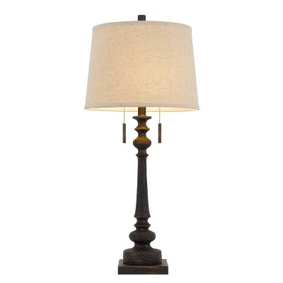 Cal Lighting makes this Traditional resin table lamp. This Rustic Iron finish lamp has a heavy weighted base and hardback Burlap shade. This lamp uses two 60 watt bulbs (bulbs are not included.) Imagine how this table lamp will look great in your dining room, living room, bedroom, kitchen, family room, or office.