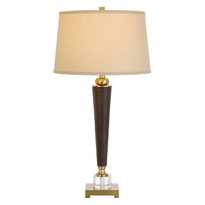 Cal Lighting’s resin/ black leatherette torch style table lamp with crystal font and metal base. The Off-White hardback linen taper drum shade is included looks great with the Classic design and Antique Brass finish base. This table lamp uses one 150 Watt 3-way bulb (not included). Add this Transitional styled lamp to your Livingroom, dining room, family room, bedroom, or office.