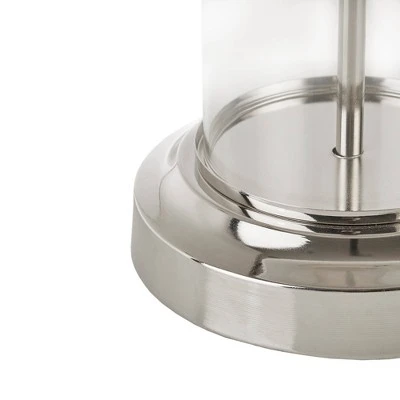 Update your living room or bedroom with the sleek style of the Clarity Table Lamp Set of 2. The base is made from metal and glass with a shiny silver finish, for an elegant touch. A off white drum-shaped shade softly filters the light, while also beautifully complementing the striking look. Providing plenty of length a 72-inch clear cord and an on/off switch on the socket, this table lamp is easy to incorporate into your existing space and perfect for accenting any transitional home decor. One Type A light bulb is needed. Comes with a 2-year warranty.