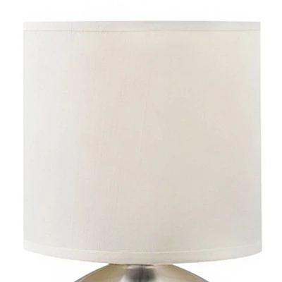 This set of 2 accent lamps features a sturdy metal body with brushed nickel finish and white faux silk shades. The convenient touch switch allows you to easily turn on the lights, making them the perfect addition to your living room, family room, bedroom, dorm room, home office, craft room, kitchen or any open concept living space. Great for apartment living or DIY home remodeling projects and suits a variety of styles including modern, transitional, contemporary, industrial, global, farmhouse, rustic and traditional decor.