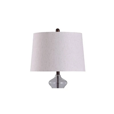 Accent your home décor with this Allen Seeded Glass table lamp from the Signature Collection by StyleCraft Home Collection. Mixed materials create a striking visual in the Allen table lamp. Clear glass and steel form the curving body, with an oil-rubbed bronze finish exaggerating the visual contrast between the substances. An oatmeal shade made of polyester and linen adds an elegant touch, making this a strong transitional piece for living rooms, offices and foyers. It will pair well with farmhouse styling. Regardless if you put it in the bedroom or family room, this table lamp stands out. Suitable for residential use in a dry location. This modern table lamp is UL listed in compliance with the nationally recognized safety standards.