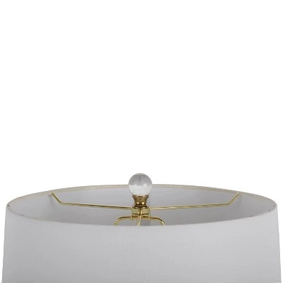 The crowning jewel of your tabletop, the Natasha Art Glass Table Lamp blends modern design with luxe finishes to brighten your home while adding artistic flare. Boasting a classic, round silhouette, the art glass base features a tortoise shell inspired design that adds a pop of dimension to your aesthetic. The clean lines of the linen drum shade enhance the modern appeal of this table lamp. A round crystal base and matching finial complete the look while adding glamorous appeal. Measuring 14 x 14 x 25.75″ the Natasha Art Glass Lamp is perfect for illuminating a dimly lit arm chair, sofa table or entryway console while adding bold style to your space. Requires one 100 watt bulb, not included.
