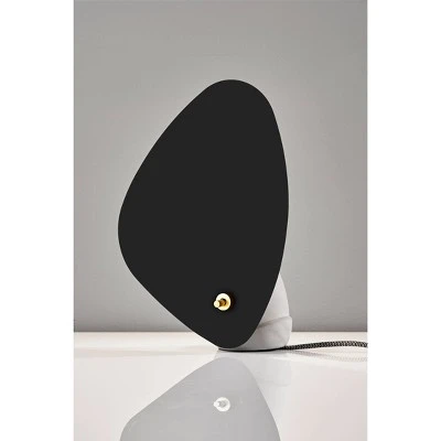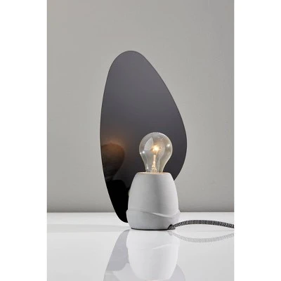Add a surprising and unique accent to your console table, bookshelf or bedside with the Bonnie Table Lantern. An irregular shaped black metal shade is set atop a natural concrete base. This lamp sits in front of the wall to reflect the light for a soft, ambient glow. Turn the lamp on and off with an industrial brass metal switch. A black and white fabric cord adds modern flare to the design. Bulb is not included.