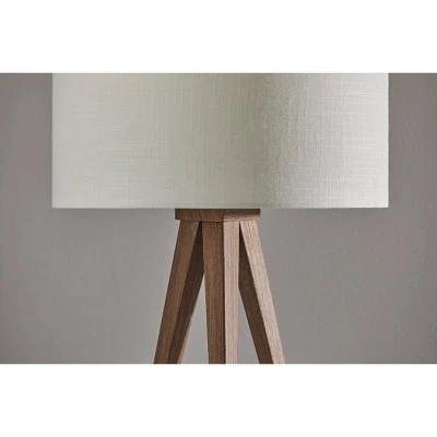 Introduce a warm, rustic accent to your living room or bedside with the Director table lamp. The walnut wood grain tripod legs are an angular counterpoint to the off-white textured drum shade. A sharp contemporary silhouette is softened by warm tones. A three-way rotary switch on the socket controls a 100 Watt incandescent bulb or equivalent CFL. The 3-way rotary socket switch will only work with a 3-way light bulb, otherwise this lamp will function with simple on/off switch at its highest setting. This lamp has a black cord that runs through the leg, hidden from sight. This lamp is also smart outlet compatible. Bulb is not included.