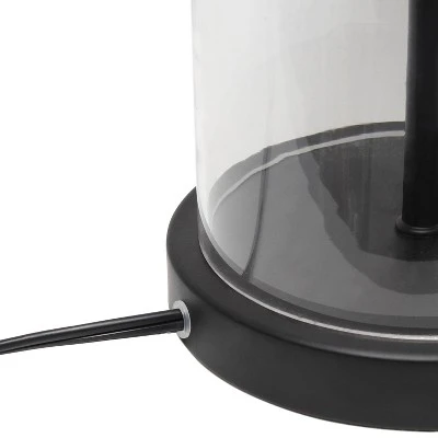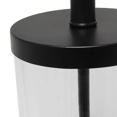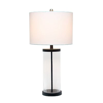 Classic yet contemporary this lamp will light up any room in your home with style! This lamp features a clear glass cylindrical base with black metal on top and bottom for a clean, sophisticated look. Perfect for your living room, bedroom, office, or anywhere you need to add a tasteful update!