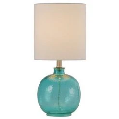With its blue finish, the Glass Table Lamp Blue from the Signature Collection by StyleCraft Home Collection provides a calming touch to the family room, study or any other room you believe it will look nice in. The glass lamp comes in a blue seeded glass finish and has a white shade in a drum shape. This piece exemplifies superior product design and great styling at an unbeatable price. This will pair well with contemporary styling and is sure to be a conversation piece. Regardless if you put it in the bedroom or family room, this lamp stands out. Lamp is suitable for residential use in a dry location. This table lamp is UL listed in compliance with the nationally recognized safety standards.