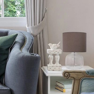 Illuminate your living space with this simple yet stylish glass table lamp. The clear glass jar shaped base and gray fabric drum shade is the perfect blend of charm to give your home a contemporary and modern upgrade. Perfect for living rooms, bedrooms, kids and teens, college dorms, apartments, nurseries, or offices.