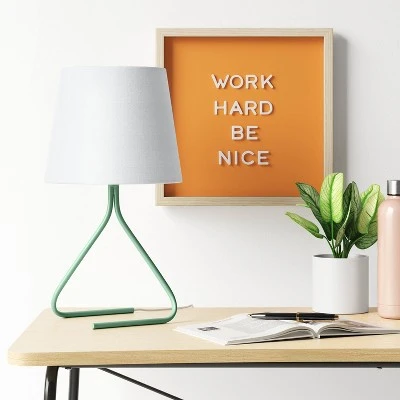 Light up any space in your home with sleek style of this Hairpin Wire Table Lamp from Room Essentials™. Supported by hairpin-like metal base, this table lamp features a white cone-shape shade for a simple yet stylish look. Easy to turn on and off with the rotary knob, this metal base table lamp makes a perfect accent piece on your study table or any other spot.
