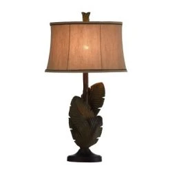 The Islamorada table lamp is made using a natural look that draws from vintage South Pacific favorites. It features a dual leaf pattern in Gray with a wentworth bronze base and body for a clean finish. Add its beige hardback fabric shade and get an authentic throwback style for the modern home. Highlight your home décor with this Islamadora Table Lamp Bronze Cloud from the Signature Collection by StyleCraft Home Collection. This lamp has a leaf shape finial and matching base that compliments the linen shade and rattan inspired base. This piece exemplifies superior product design and great styling at an unbeatable price. This will pair well with tropical styling and is sure to be a conversation piece. Regardless if you put it in the bedroom or family room, this lamp stands out. Suitable for residential use in a dry location. This table lamp is UL listed in compliance with the nationally recognized safety standards.