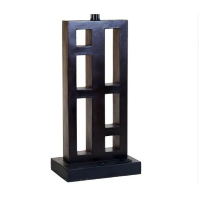 Featuring a geometric frame with an expresso finish and an off white fabric shade, the Liam Table Lamp has a unique appearance that is still versatile enough to work with any décor style. The rectangular frame has several horizontal and vertical bars in the center, creating an openwork pattern of smaller rectangles. Additional artistic details, such as the matching trim on the hardback rectangular shade, make this table lamp a striking fixture for an office, bedroom, or living room.