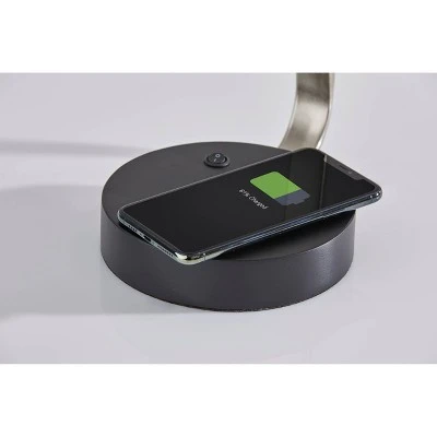 The Louie AdessoCharge Wireless Charging Table Lamp combines modern styling with high-tech features. A thick black wood base encases a hidden Qi wireless charging pad. Just place your phone onto the wood base, and your phone will charge right up! Many phones have Qi technology built in already, but for those that don’t, a USB port is conveniently located right in the base as well. Brushed Steel metal is paired with a white fabric shade, revealing a beautiful texture when lit. All Adesso lighting product is either UL or ETL listed, meaning that it has been tested and approved to meet the government-regulated safety standards for the USA. Bulb is not included.