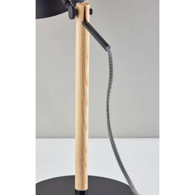 The 19″ tall Dylan desk lamp brings a blend of natural and metal materials and a unique silhouette that complement contemporary, mid-century modern, or modern chic décor. The lamp features a thin, 9″ diameter black metal base supporting a natural China oak stem. Topping the lamp is a large round black metal shade with a matching mesh top that can be rotated to direct the light from a 100W bulb (not included) wherever it’s needed. The lamp is powered by a 5′ cord covered in black and white fabric. Complete your décor with the coordinating tall Dylan floor lamp.