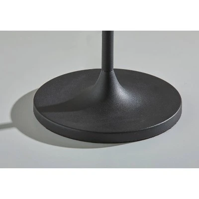 An interpretation of Scandinavian design, the Oslo table lamp features a matte black modified trumpet shaped base and body and is topped with a hardback drum shade of cherry wood veneer. The wood veneer has a natural wood grain that is highlighted when lit. An on/off rotary switch is located on the socket. This lamp has a clear cord and is smart outlet compatible. Bulb is not inlcuded.