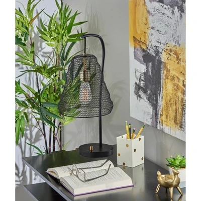 Add a touch of industrial style to your living space with the 24.5″ tall Sheridan table lamp. The large black metal wire mesh shade, measuring 10″ in diameter and 11.75″ tall, has a distinctive silhouette that will become the focal point of your décor. With a distinctive mesh pattern, the shade leaves the included 40W vintage Edison bulb and stylish antique brass accents visible. This table lamp also features a sturdy round black metal base that is 7″ in diameter. The lamp easily turns on an off with a rotary switch located on the base and is powered by a 5′ long black fabric-covered cord. Complete your space’s look with the coordinating Sheridan floor lamp and pendant lighting.