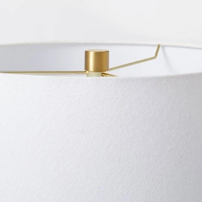 Brighten up your space in modern style with this Large Ceramic Jar Table Lamp from Threshold™ designed with Studio McGee. This table lamp includes a large pot-like ceramic base with two handles and a drum-shape shade. The gray ceramic base comes with a striped pattern that complements the white shade for an appealing look. Designed with a dimmable light setting, this ceramic table lamp helps you adjust the light according to your need — just place it in your reading nook or living room to create a beautiful setting.