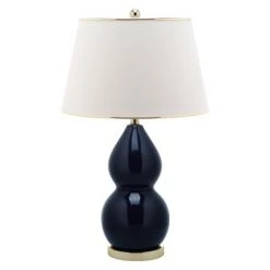 (Set of 2) 26.5" Jill Double- Gourd Ceramic Lamp Navy (Includes CFL Light Bulb) – Safavieh