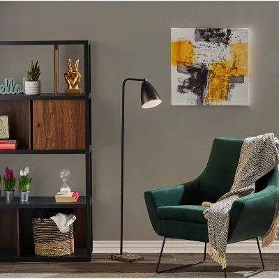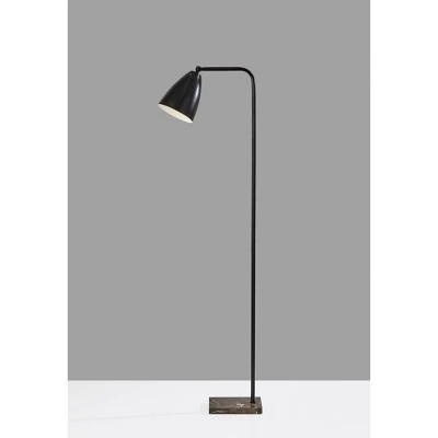 Inspired by classic silhouettes, this floor lamp boasts a trendy twist by adding a brown marble base, which adds a beautiful contrast to a matte black finish. It has an adjustable shade, allowing you to rotate the lamp head for your desired lighting angle. Place this lamp next to your desk or your favorite reading chair for functional task lighting that will add a pop of industrial style to your room. A simple on/off switch is located on the shade.